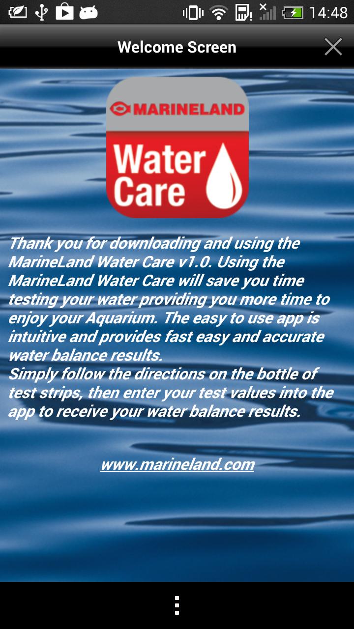 Marineland est une marque déposée de United Pet Group. L'application concerne les utilisateurs finaux qui ont déjà acheté ou qui cherchent à acheter les bandes de test prises en charge dans l'application de la Marineland Water Care . L'application est une ressource pour les propriétaires d'aquarium.
